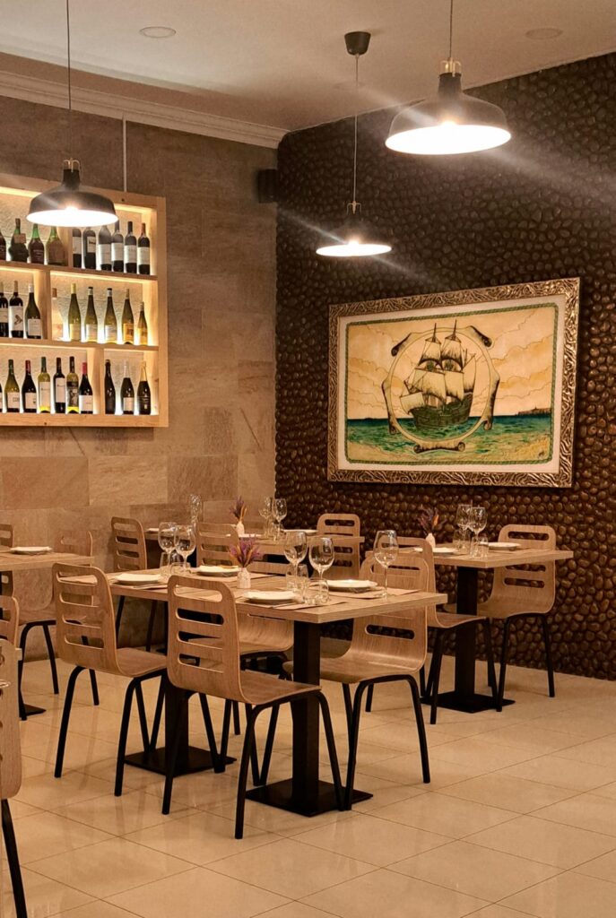 Durante os 32 anos em que os pais do chef estiveram na liderança desta ‘caravela’, o próprio não perdia a oportunidade de estar por perto, nem que fosse a servir às mesas. Assim que os pais começaram a pensar em reformar- se, decidiu aprofundar os conhecimentos que já tinha para, “com muita satisfação”, poder dar continuidade ao legado de família, em jeito de celebração e passagem de testemunho produziu, numa parceria com a Quinta da Lapa, um vinho tinto e branco apelidando-o de 32 anos de História.