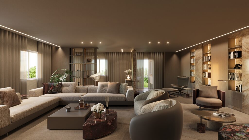 As tendências de arquitetura e design para 2026 refletem uma nova forma de viver o luxo, mais emocional, sensorial e profundamente conectado às pessoas. Vemos uma valorização crescente do quiet luxury, onde a elegância se expressa em materiais nobres, texturas ricas e acabamentos artesanais que transmitem sofisticação sem excessos. O bem-estar torna-se central: iluminação circadiana, espaços biofílicos, ambientes que acolhem e equilibram corpo e mente. A arte assume um papel protagonista e o artesanato de alta qualidade ganha força como símbolo máximo de exclusividade. A tecnologia evolui para um papel invisível, totalmente integrada, elevando o conforto sem comprometer a estética. E, naturalmente, há uma consciência crescente pela sustentabilidade, não apenas como conceito, mas como critério essencial nos materiais.