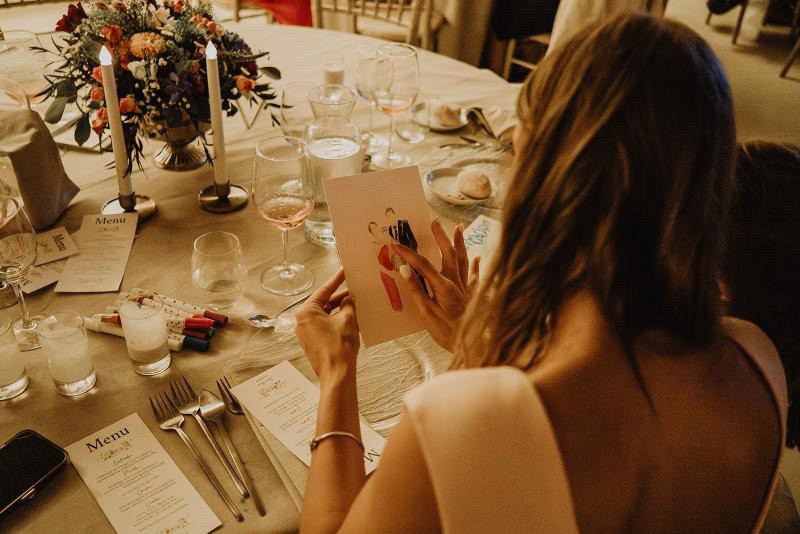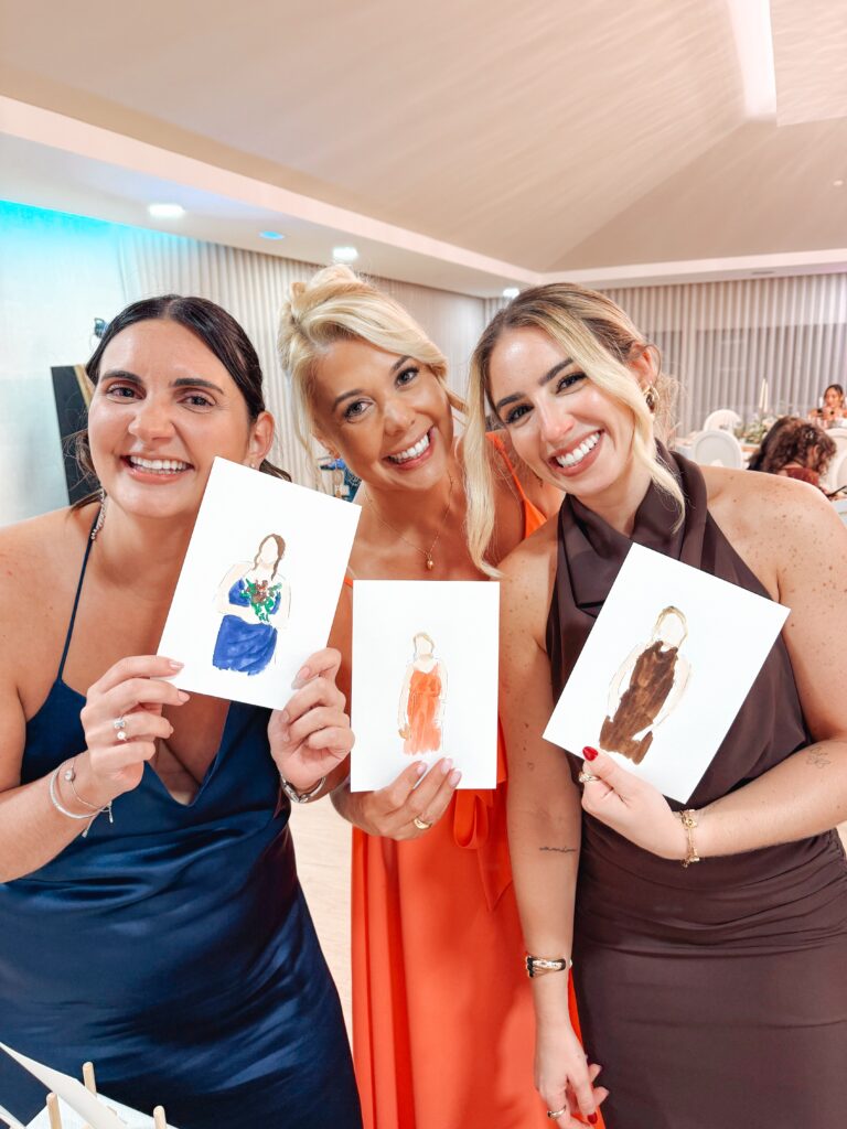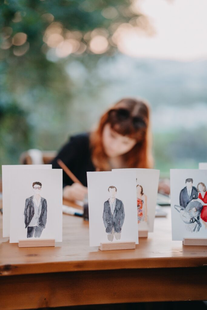 Há convidados mais reservados e outros que se entregam completamente à experiência. Esses vivem o momento de forma muito genuína e isso sente-se. Também gosto muito de ilustrar pessoas mais velhas. Muitas vezes emocionam-se de forma muito pura ao receber o retrato.