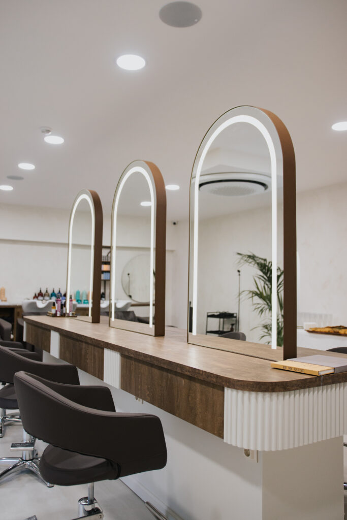 O ambiente desempenha um papel importante na identidade do espaço. Moderno, feminino e acolhedor, o salão foi concebido para ser um lugar de pausa e cuidado. “Acredito que ir ao cabeleireiro não deve ser apenas um serviço, mas um momento de cuidado, pausa e valorização pessoal”.